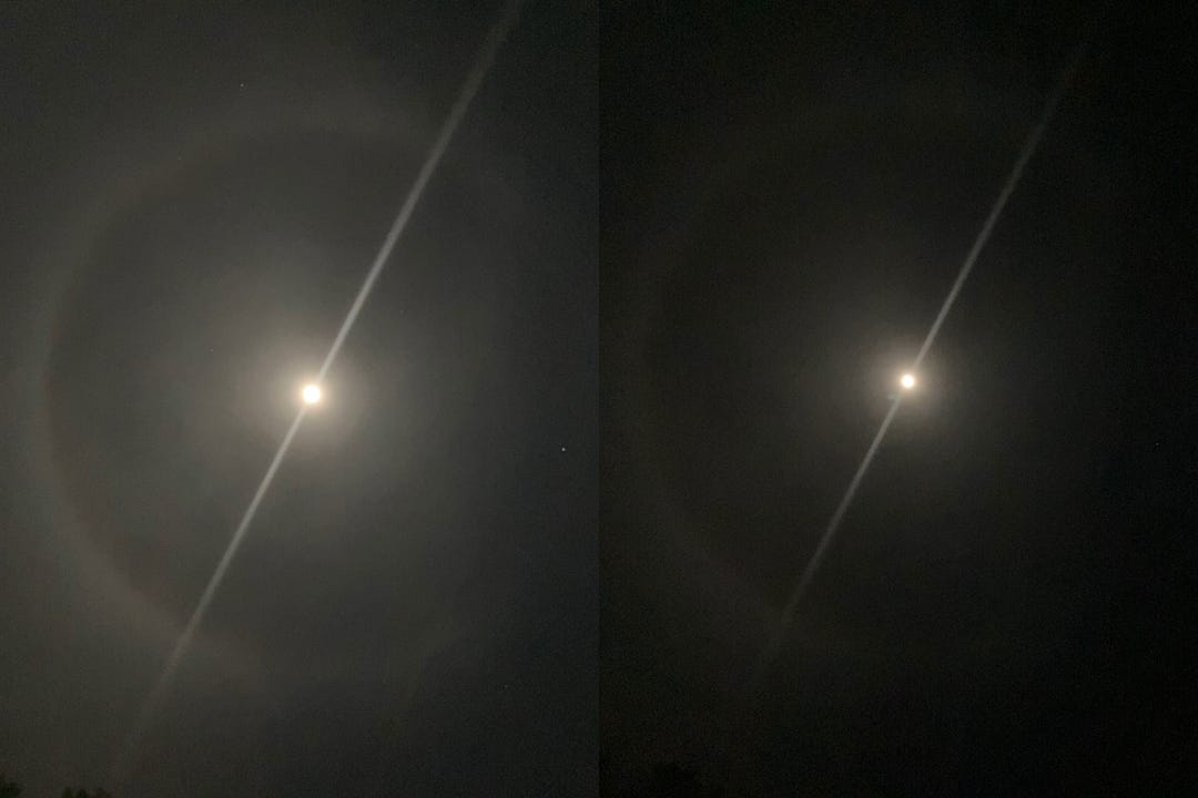 Later, I read in a news article that moon halos are caused by light reflecting off of hexagon-shaped ice crystals in the upper atmosphere and lining up in a particularly lucky way. Okay, sure, I thought to myself while rolling my eyes, of course. It’s all just a coincidence. Nothing more, nothing less. Very scientific. Very knowledgeable.