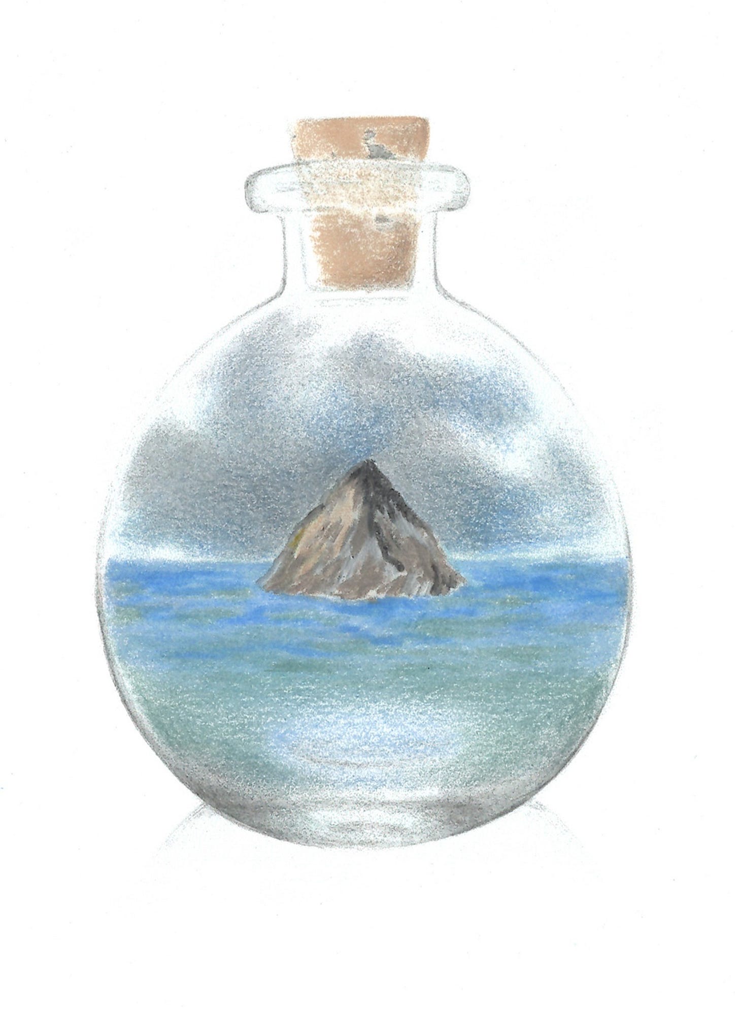 I had a conception of myself, a visual metaphor for my spirit. Picture a round flask. Inside of it is an ocean. Filled up to the halfway point or so. Water and waves. In the center, there is a sharp rock, jutting out and towering above the waters. Something solid. At the top of the flask is a cork, sealing and protecting my spirit. “Above all else, guard your heart, for everything you do flows from it.”